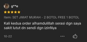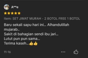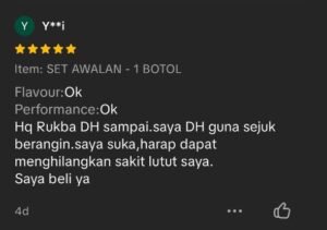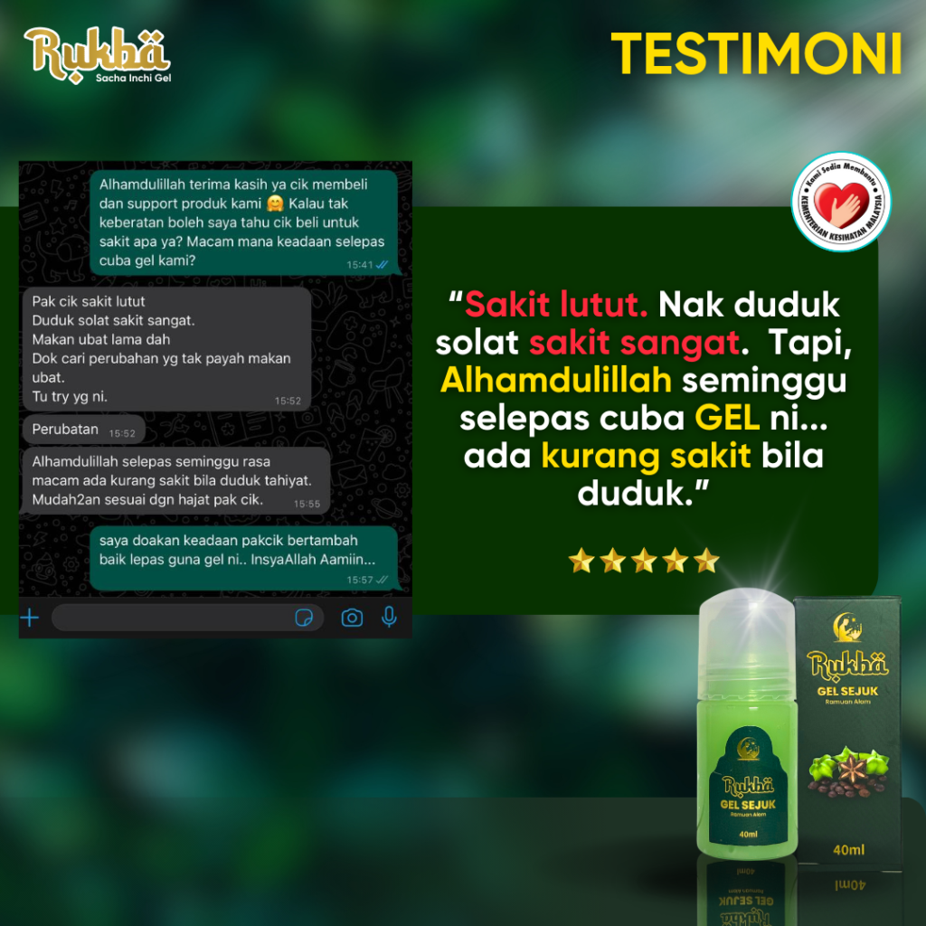 “Alhamdulillah sakit lutut dan semakin kurang selepas 5 hari amalkan Gel RUKBA ni..”
