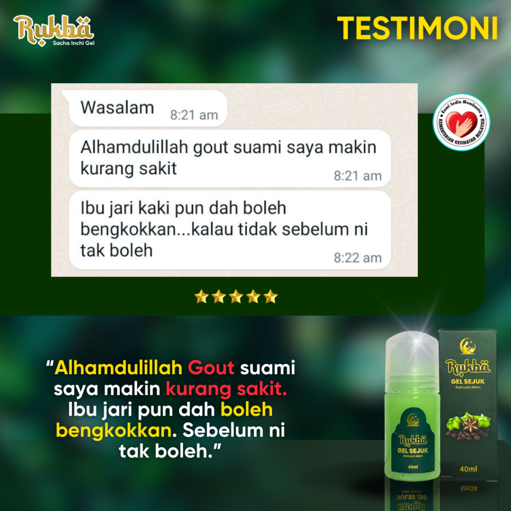 “Alhamdulillah gout pun dah hilang selepas amalkan Gel RUKBA ni..”