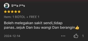 “Sentiasa simpan sebotol RUKBA ni, bila sakit je boleh terus sapu dan sakit hilang dengan pantas”